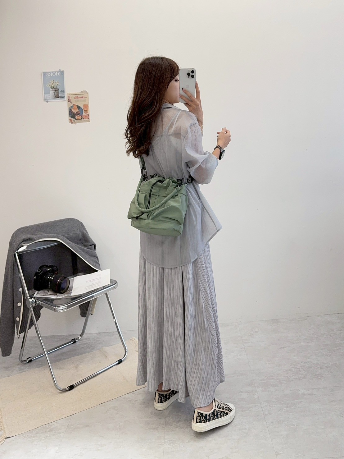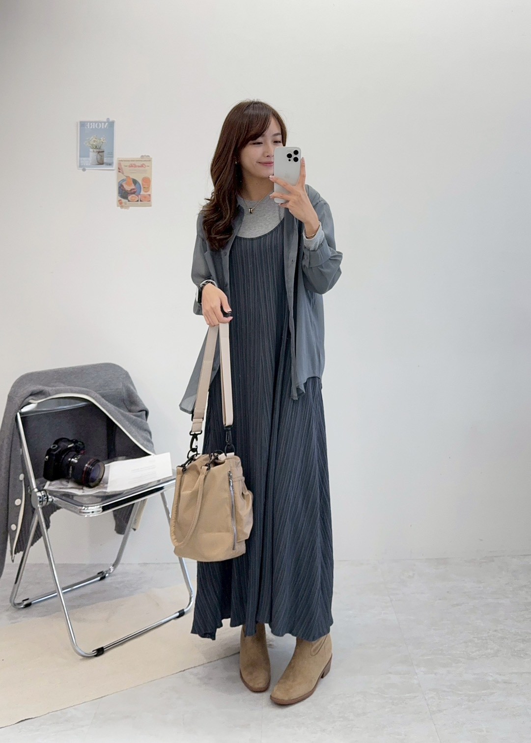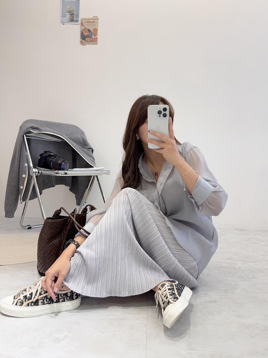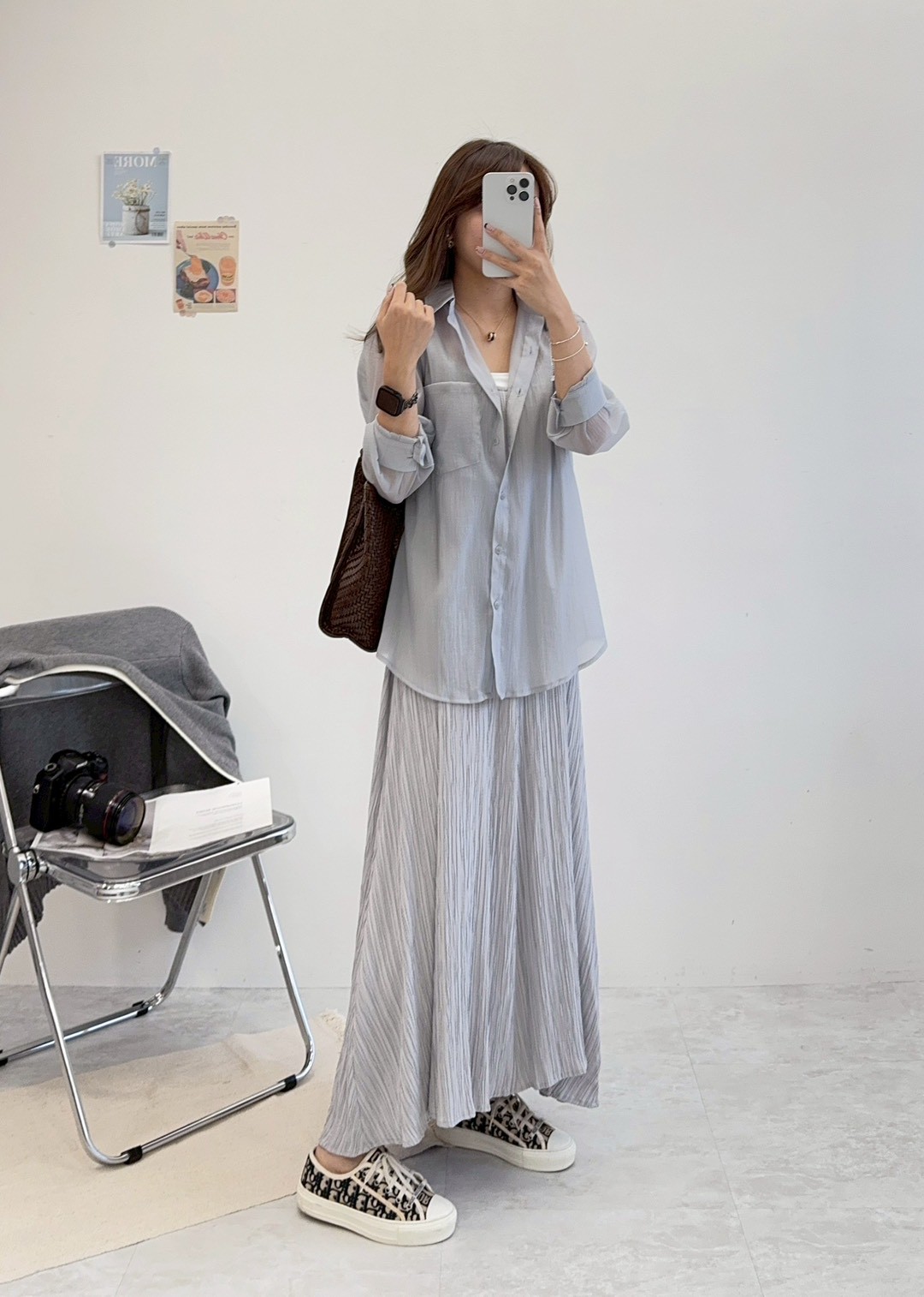 三宅文青百褶兩件套|霧灰襯衫 × 飄逸百褶裙。