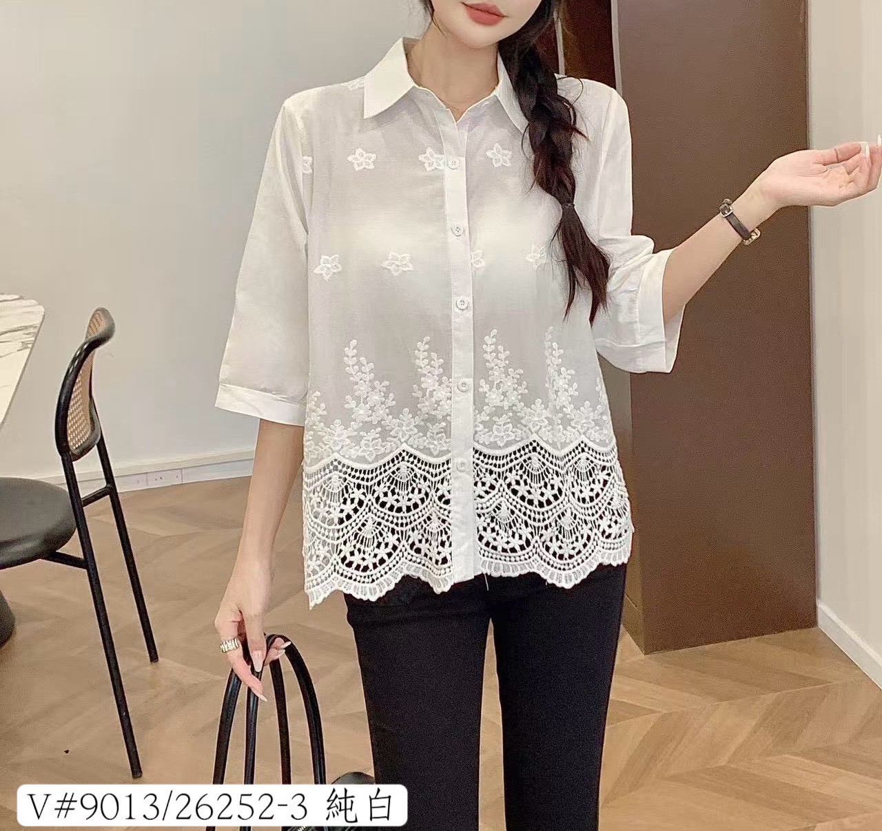 首頁/全館商品/女裝/上衣/下襬鏤空蕾絲襯衫 下襬鏤空蕾絲襯衫NT$379 下襬鏤空蕾絲襯衫|細緻刺繡 × 微透輕盈材質,顯瘦又氣質。 約會、上班、出遊都能穿出溫柔感 💖 下襬鏤空蕾絲襯衫 數量 加入購物車 貨號: 2510_06_9013 分類: 上衣, 女裝 標籤: 優雅風, 氣質上衣, 溫柔小姐姐, 約會穿搭, 蕾絲襯衫, 鏤空設計 描述 評價 (0) 💐 氣質優雅風 ✨ 下襬鏤空蕾絲襯衫 ✨ 細緻蕾絲刺繡+下襬鏤空設計, 溫柔中帶著小浪漫 💖 微透感材質讓整體更輕盈飄逸~ 修飾身形的寬鬆剪裁,穿起來舒適又顯瘦 👏 搭配牛仔褲或長裙都超有氣質 💫 穿上立刻變身溫柔小姐姐 🥰 📏 胸寬 52 cm|衣長 58 cm 🌸 上班、約會、出遊都完美駕馭 #蕾絲襯衫 #氣質上衣 #優雅風 #鏤空設計 #約會穿搭 #溫柔小姐姐 商品評價 目前沒有評價。 只有註冊並且購買過商品的顧客才能撰寫評價。 相關商品 碳黑版立體壓線寬直筒褲 NT$460 女裝, 褲子加入購物車 藍立體壓線寬直筒褲 NT$460 女裝, 褲子加入購物車 褲口花朵寬褲 NT$380 女裝, 褲子選擇規格 此產品有多種款式。 可在產品頁面選擇選項 極簡慵懶舒適針織三件套 NT$720 套裝, 女裝選擇規格 此產品有多種款式。 可在產品頁面選擇選項