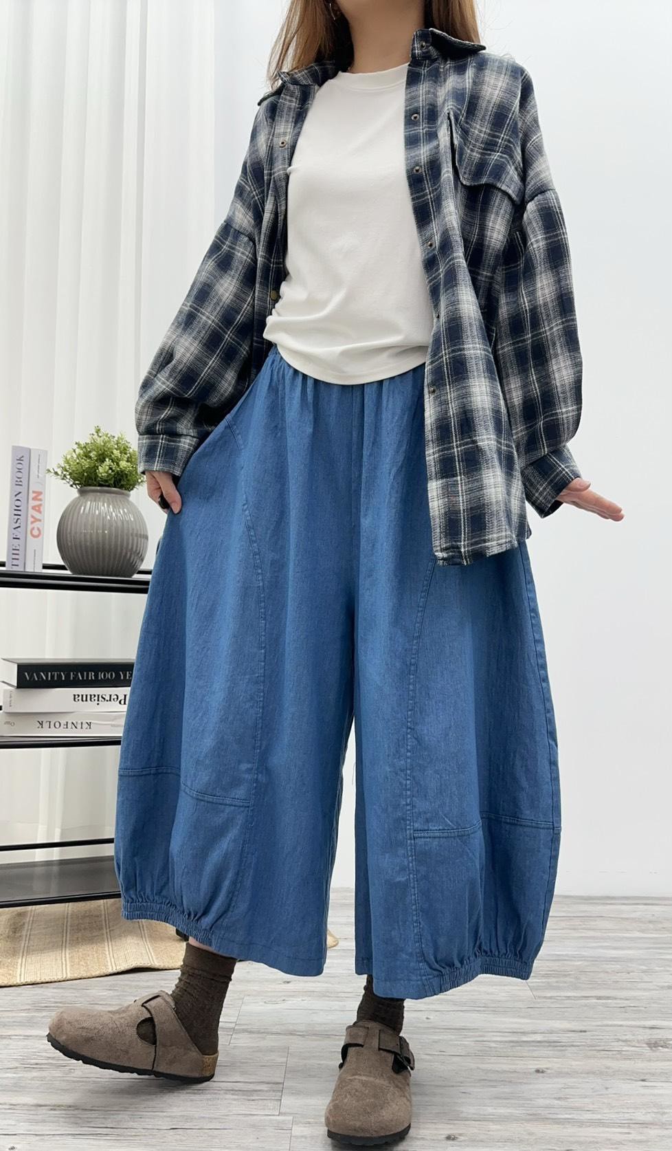 這款單寧氣球褲寬鬆不挑身形,
