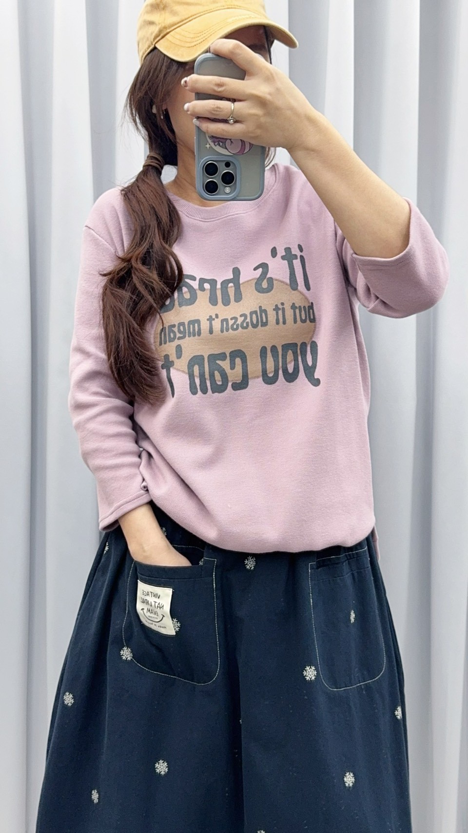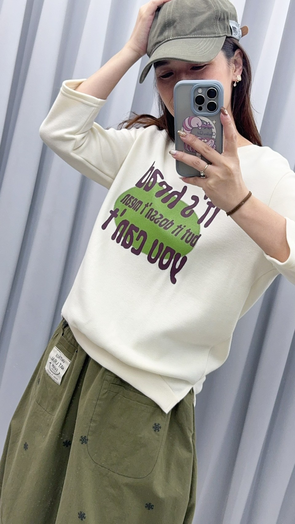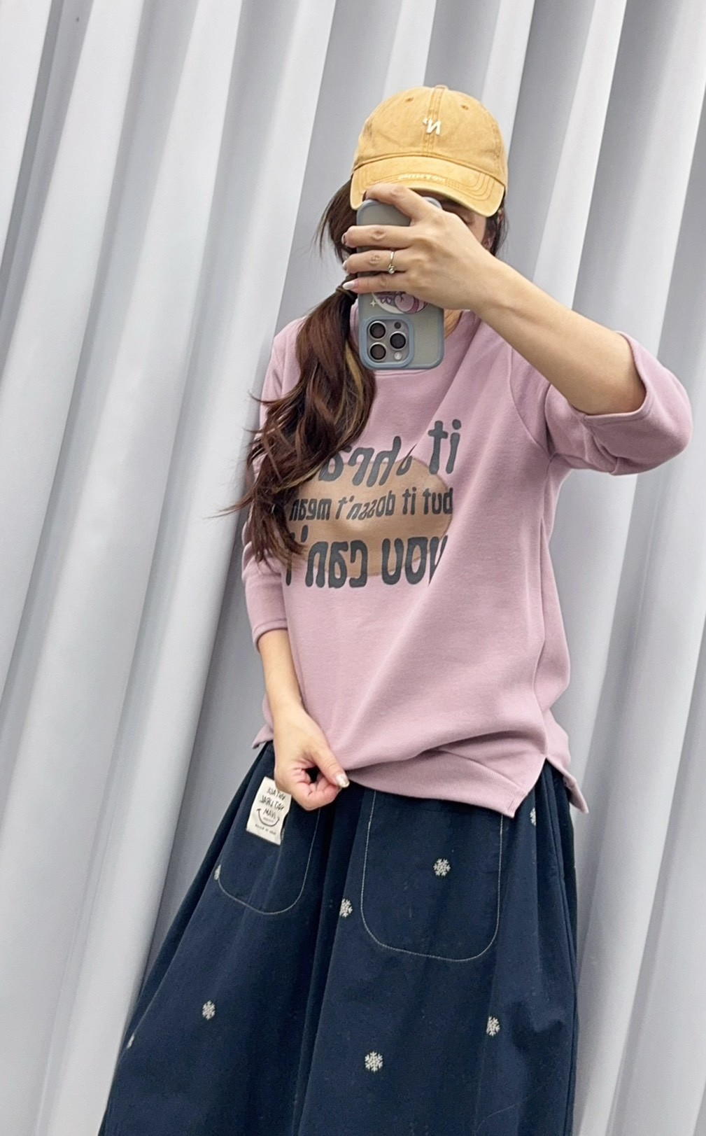 #顆粒棉上衣 #英文字T #撞色設計 #七分袖上衣 #韓標上衣 #