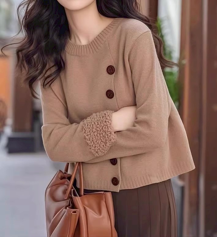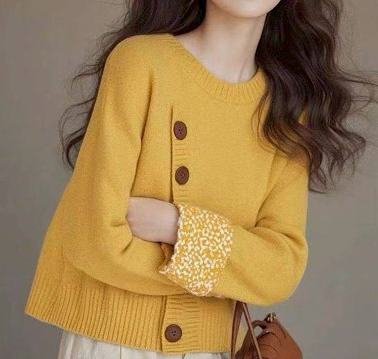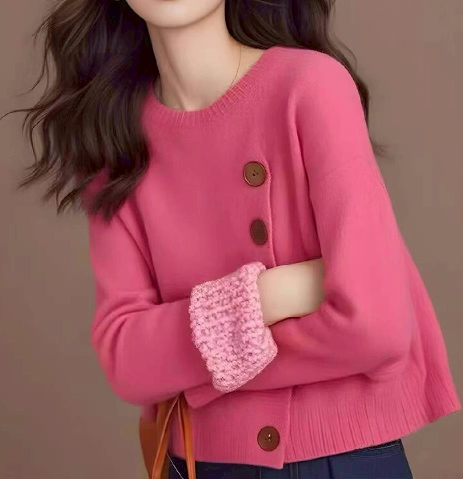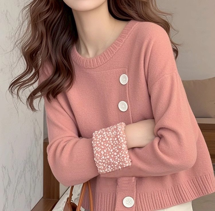 #針織上衣 #鈕扣設計 #配色翻袖 #甜美氣質 #少女系穿搭 #日常上衣