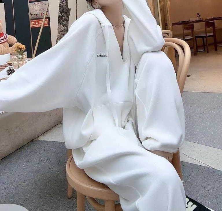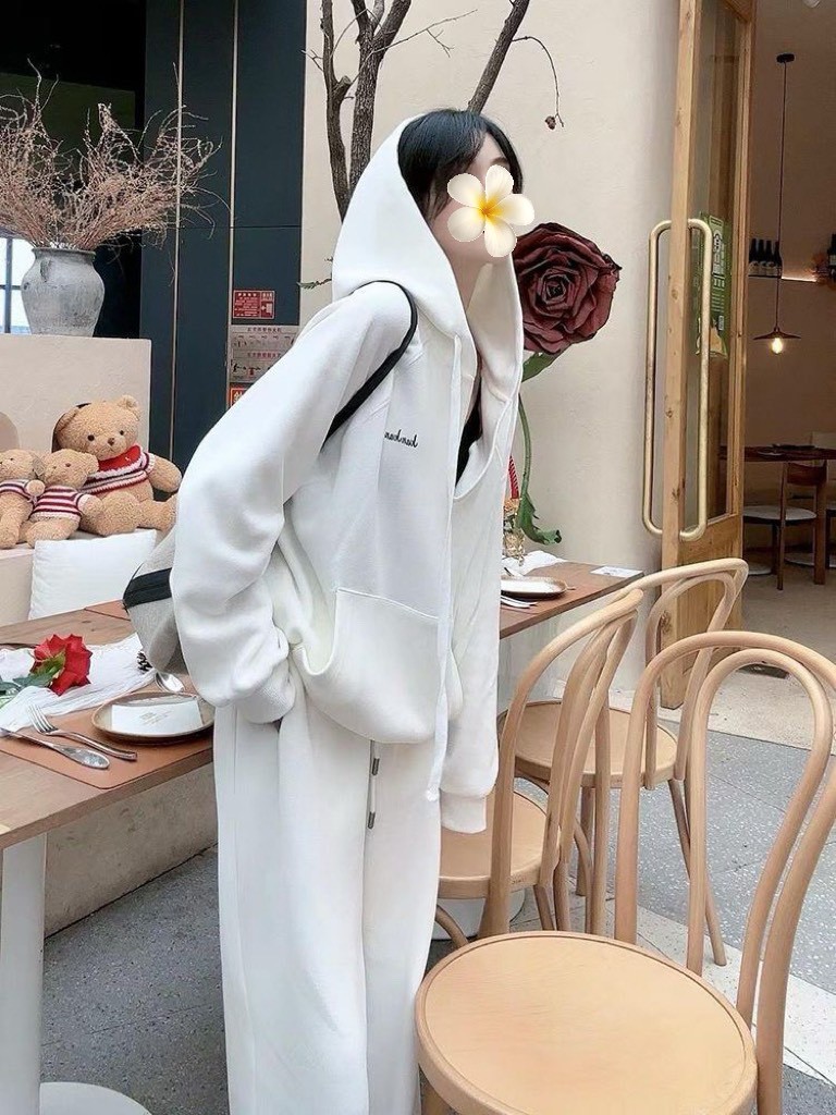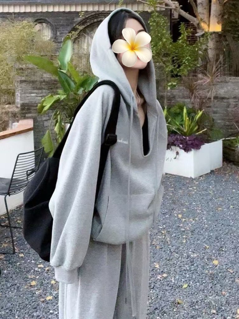 #連帽套裝 #刺繡設計 #休閒風 #懶人穿搭 #舒適日常look
