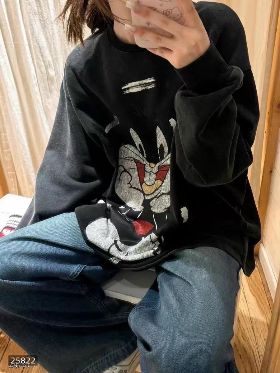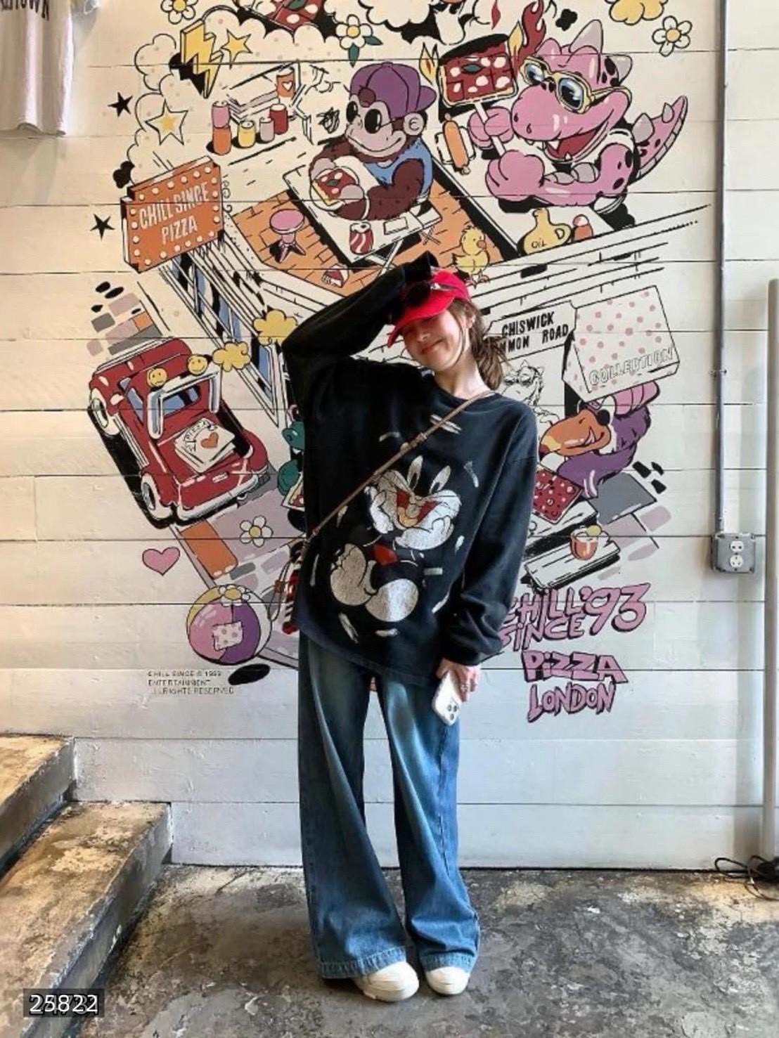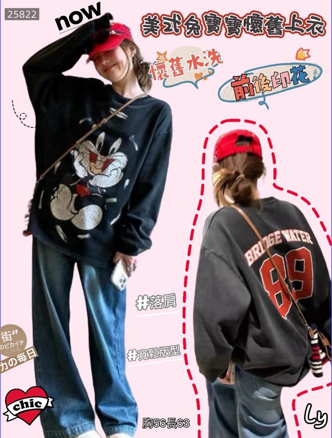 #美式復古 #兔寶寶上衣 #懷舊風 #水洗設計 #街頭休閒 #90年代穿搭