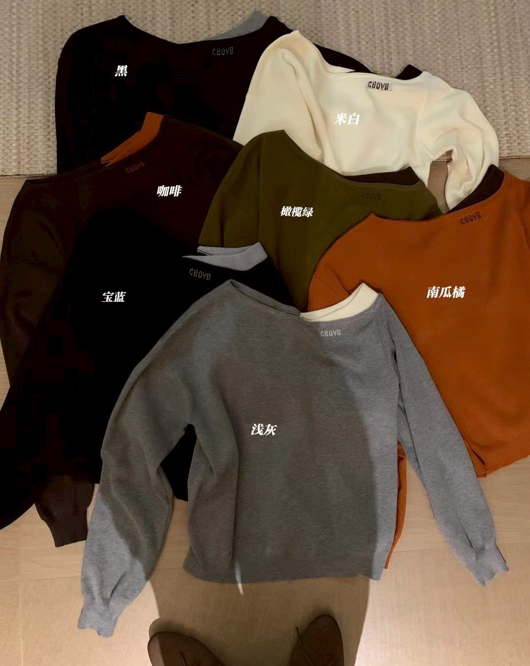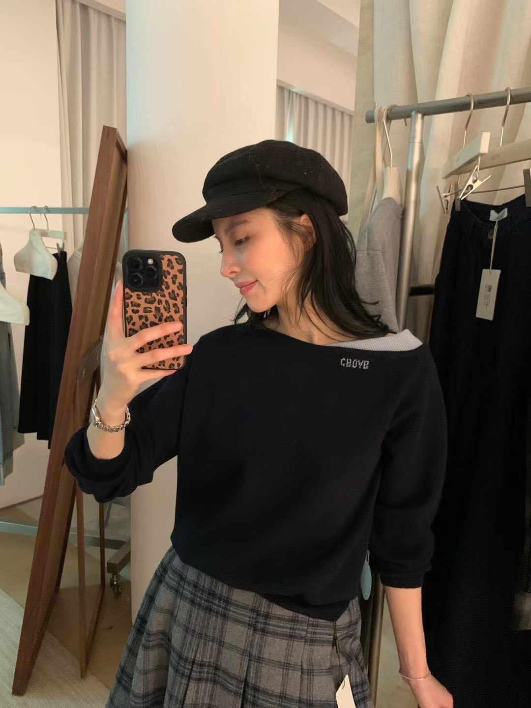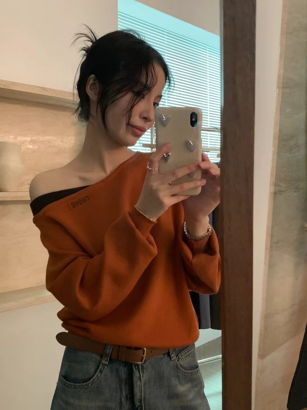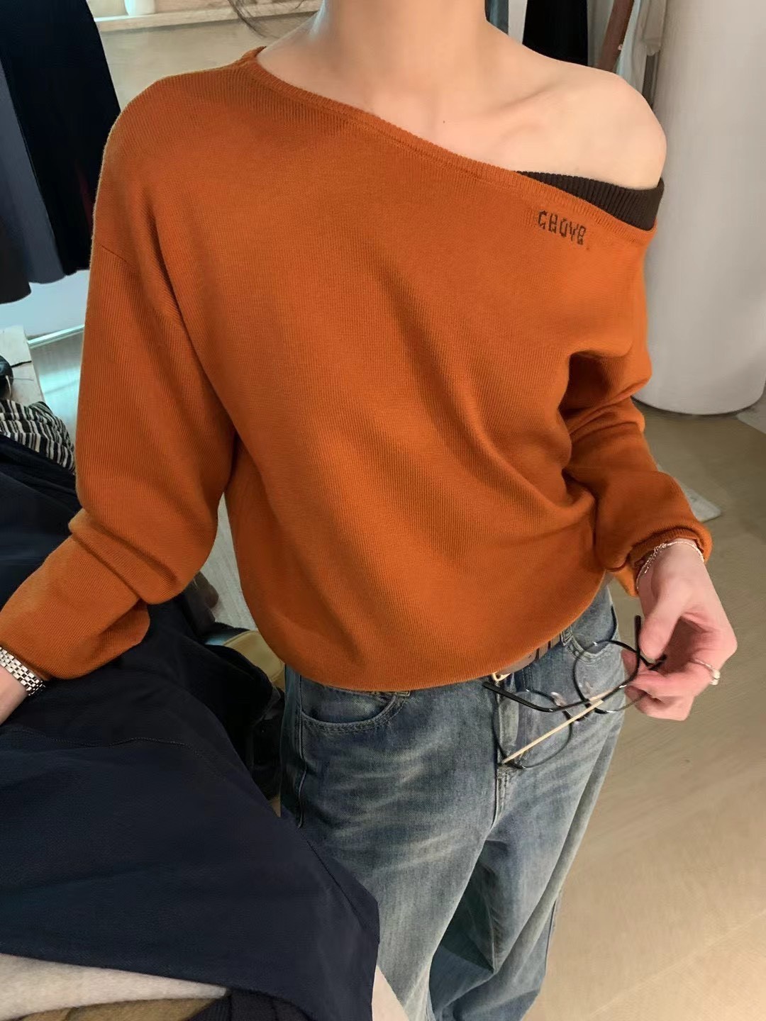 #針織上衣 #露肩設計 #撞色穿搭 #韓系上衣 #微性感風 #百搭單品