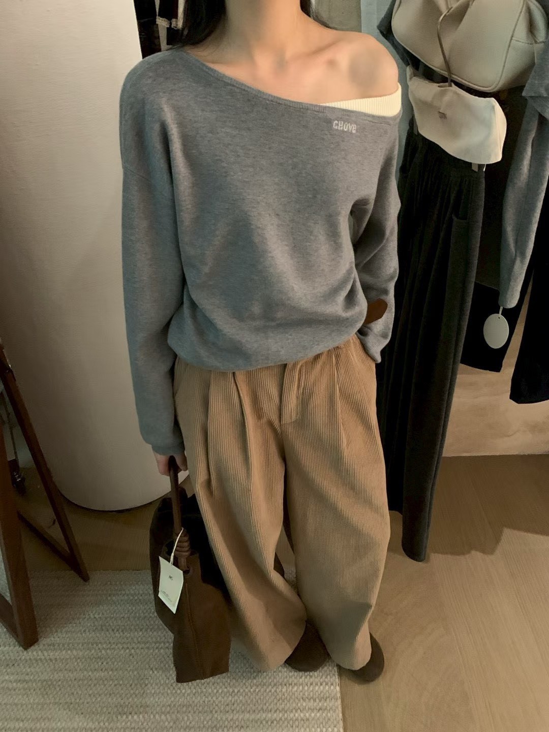 露肩撞色針織上衣|微性感剪裁 × 撞色邊框細節滿分。