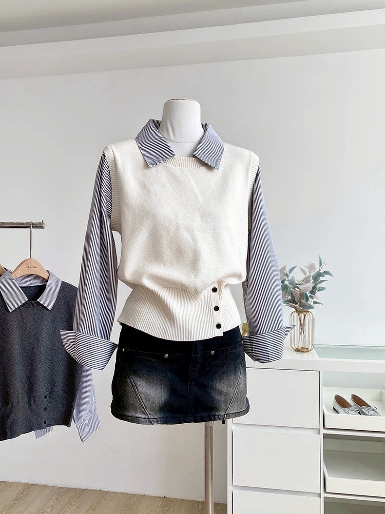 首頁/全館商品/女裝/上衣/韓系學院假兩件拼接針織衫 韓系學院假兩件拼接針織衫NT$360 一件就能完成學院感穿搭✨ 針織背心+條紋襯衫袖與領口的拼接設計, 自帶層次感,省去搭配煩惱,時髦又俐落。 不規則下擺小巧思,為整體造型增添俏皮氛圍💫 顏色 請選取一個選項杏灰色藍色黑清除 韓系學院假兩件拼接針織衫 數量 加入購物車 貨號: 2509_04_2318 分類: 上衣, 女裝 描述 額外資訊 評價 (0) ✔ 四款經典百搭色,耐看不挑人 ✔ 搭配牛仔褲清新減齡,西裝褲又能俐落有型 ✔ 通勤、課堂、休閒約會都能輕鬆駕馭 一件到位,輕鬆演繹韓系學院風👩🏻🎓✨ 🎨顏色:杏 / 灰 / 藍 / 黑 📏尺寸:胸50長56公分 顏色 杏, 灰色, 藍色, 黑 商品評價 目前沒有評價。 只有註冊並且購買過商品的顧客才能撰寫評價。 相關商品 黑標工裝彎刀褲 NT$360 女裝, 褲子選擇規格 此產品有多種款式。 可在產品頁面選擇選項 美式個性水洗大學T NT$339 上衣, 女裝加入購物車 碳黑版立體壓線寬直筒褲 NT$460 女裝, 褲子加入購物車 下襬鏤空蕾絲襯衫 NT$379 上衣, 女裝加入購物車